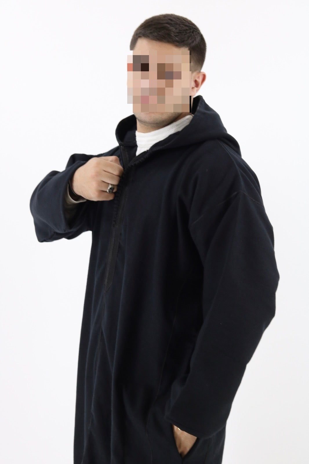 Crafted from high-quality Liverpool fabric, the Djellaba Mlifa combines comfort and durability with timeless style. Its semi-industrialized sewing ensures consistency, while the handmade Aakad details reflect traditional craftsmanship. Designed with a practical front zipper and discreet side pockets, this Djellaba offers both functionality and elegance. It provides a flattering fit and is perfect for both casual and formal occasions.