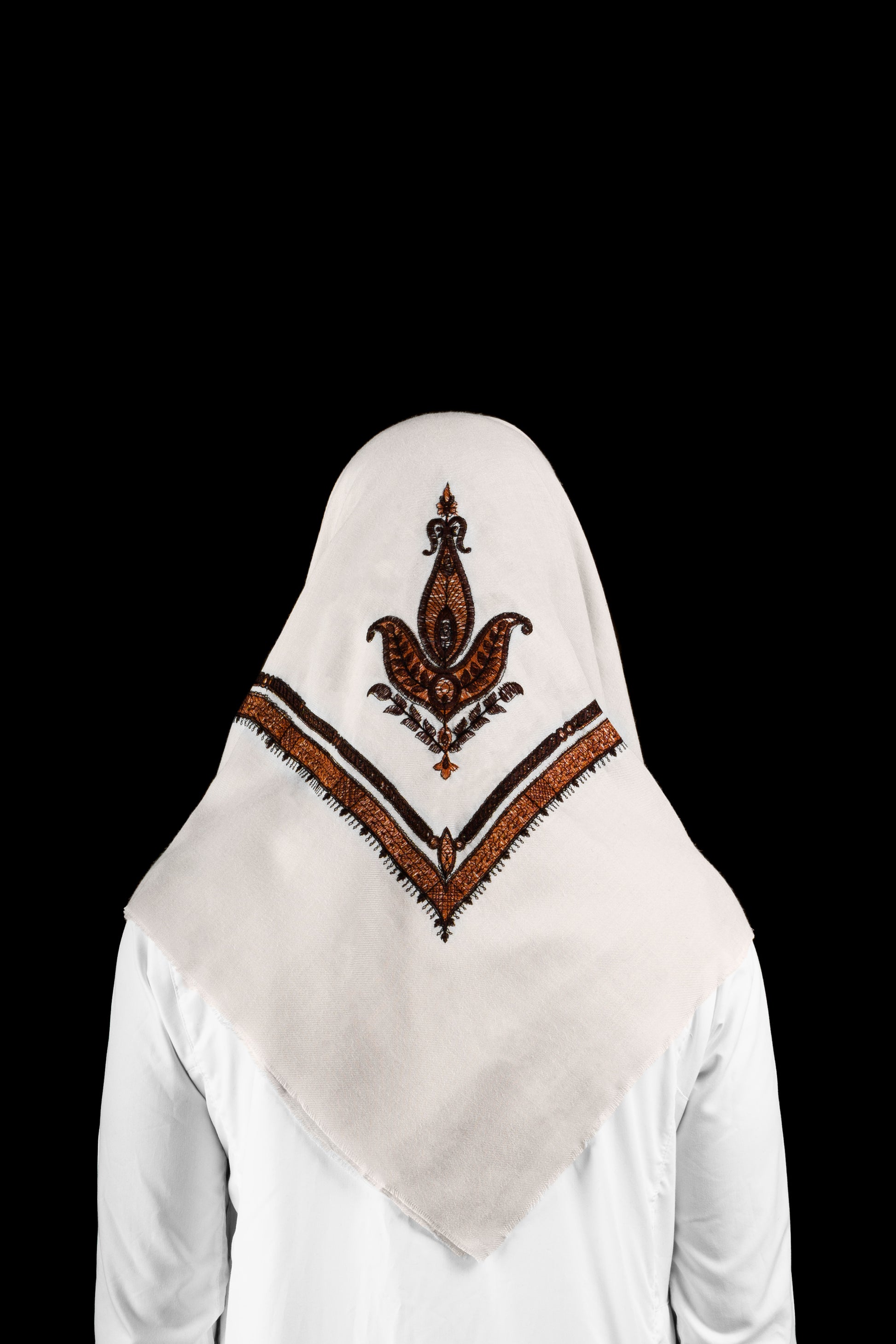 Yemeni Shemagh - Soft Grey with Brown Embroidery